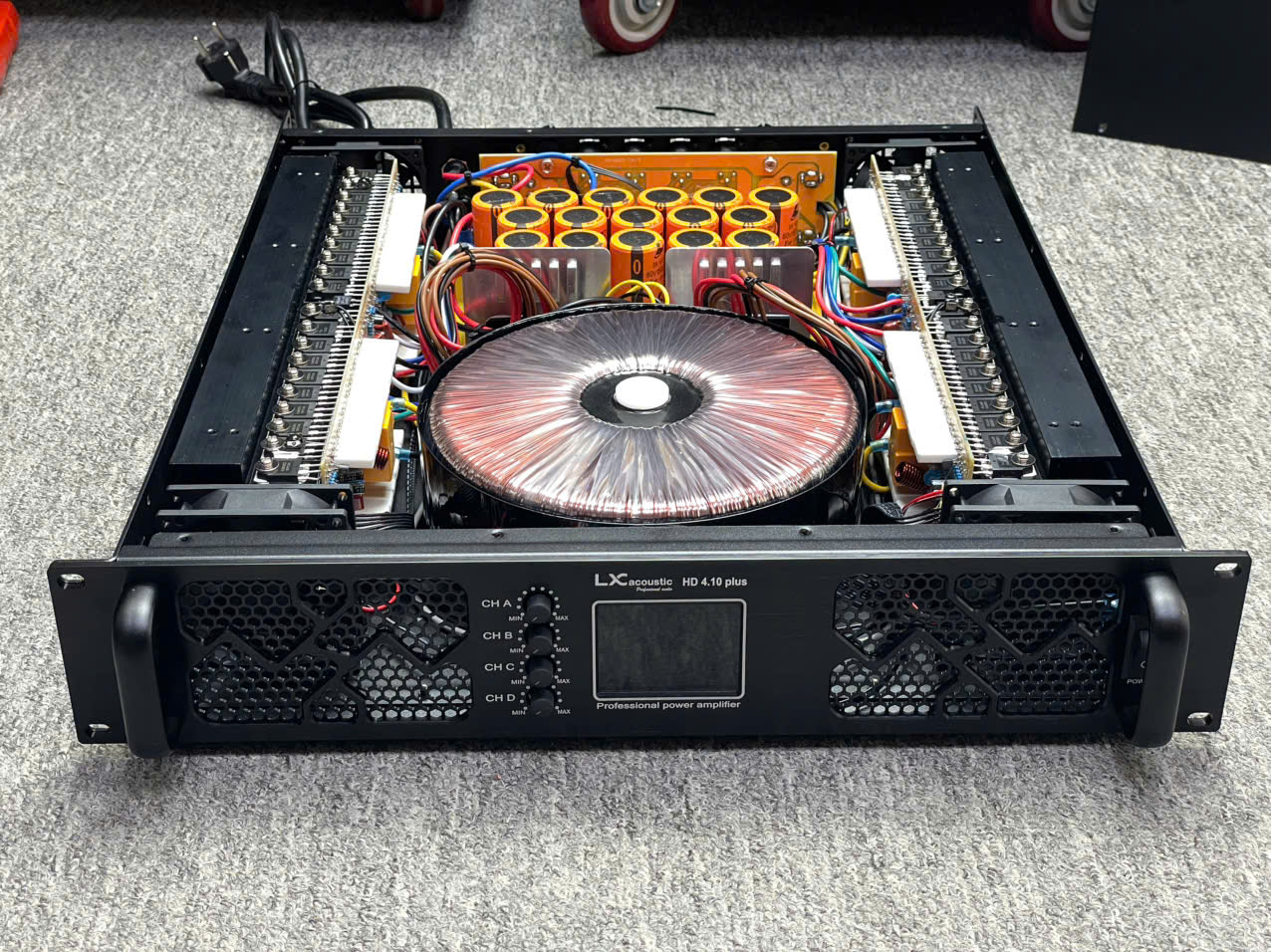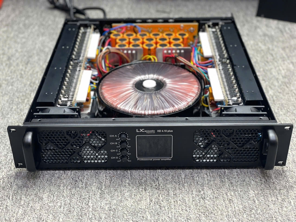 Cục đẩy công suất LX acoustic HD4.10plus là một thiết bị âm thanh chuyên dụng được sử dụng để cung cấp công suất cho các hệ thống âm thanh. Được sản xuất bởi hãng LX acoustic, cục đẩy HD4.10plus có 4 kênh đầu vào và 4 kênh đầu ra, với công suất tối đa lên đến 1000W / 1 kênh. Đây là một trong những model được sử dụng rộng rãi trong nhiều hệ thống âm thanh như sự kiện, biểu diễn, hội trường,…